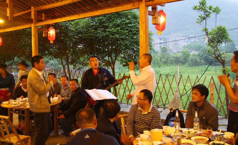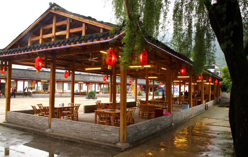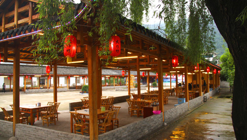 張家界武陵源大作坊美食城是一家集垂釣休閑,特色餐飲,夜市為一體的大型風味美食城!位于風景如畫的武陵源風景區(qū)區(qū)政府所在地,占地3000多平方米,可同時容納400多人就餐。這里也是景區(qū)內(nèi)匯集土家美食,苗家美食的第一坊!美食城按純木四合院建造,內(nèi)設(shè)酒作坊,豆腐作坊,臘味作坊,糍粑作坊,有垂釣區(qū),燒烤區(qū),菜品自助區(qū),客人廚藝展示區(qū),農(nóng)產(chǎn)品展銷區(qū)等。酒作坊內(nèi)聘請了民間煮酒大師現(xiàn)場煮酒,你有機會可以現(xiàn)場吃到熱乎乎的頭鍋酒,酒坊內(nèi)有純米酒,包谷燒,高梁酒,有用野果泡制的各種果酒---燈籠酒,楊梅酒,彌猴桃酒等,更有特色的是把高梁酒放在正在生長的楠竹內(nèi),用竹內(nèi)竹膜的香味把酒增香,十二天就把竹子砍下再放養(yǎng)三天就好了,客人要吃現(xiàn)場鋸竹筒酒吃!豆腐坊也是聘請民間老農(nóng)現(xiàn)場用自制的石磨做豆腐,在這里你可以吃到真正有豆香味的原汁原味的石磨豆腐,和渣,菜豆腐,豆腐腦等豆制品!臘味作坊里有冬天用各種香料熏制的正宗湘西藏臘肉,臘豬頭肉,臘香腸,臘豬腳,各種臘制品臘野味等。糍粑坊每天在晚上人多用餐高峰時現(xiàn)場打滋粑,客人也可以自己參與打糍粑這個快樂的過程,想受過年時才有的熱鬧情景!在垂釣區(qū)里我們放養(yǎng)有很多野生魚類,有時間了你可以來這里休閑垂釣,得到的魚我們就會給你現(xiàn)場加工,有清沌的,紅燒的,青椒燜的,酸湯的,都很好吃哦。燒烤區(qū)里,我們高薪聘請了燒烤大師為你現(xiàn)場制做,你也可以自己動手,有烤羊排羊腿,各種串烤,烤全魚,烤全兔等,還有各種鐵板烤可以自己炒著吃!菜品自己選區(qū)里有各種山野菜,壇子菜,干菜,臘味等,有各種鮮活的魚類,河蛘,水魚,田螺,龍蝦等,有各種農(nóng)家的土雞土鴨等,有各種鮮活的野味等你來享受美味呢!客人廚藝展示區(qū)里老板特設(shè)制地幾口大鍋, 很有特色的是, 你可以自己親自下廚, 酸甜苦辣任您自由調(diào)配 。 煮好了, 大家就圍著這“灶臺”合一的飯桌享受張家界的美食了。(張家界的三下鍋是很有特色的,是邊煮邊吃的, 只是這“三下鍋”是“大型三下鍋”而已。到張家界旅游,吃張家界的“三下鍋”是一種獨有的旅游體驗,到大作坊吃“大型三下鍋”,則更將會為你的旅程增添一份難得的回味。農(nóng)產(chǎn)品展銷區(qū)里展示著當?shù)鼗蛳嫖鞯貐^(qū)最暢銷的農(nóng)產(chǎn)品食品:正宗湘西鄉(xiāng)里臘肉,香腸,各種臘制品,洗車河霉豆腐,靈潔牌剁椒辣醬系列,菌油,正宗茶籽油,苗家酸湯,鄉(xiāng)里正宗葛粉,大壇湘西五糧液,竹簡敲敲酒,張家界茅巖霉茶,野生蜂蜜,高山葛粉,張家界第一山珍巖耳,葛根片等等! 武陵源大作坊美食城是武陵源景區(qū)規(guī)模最大,品種最多,環(huán)境最優(yōu)雅的休閑美食城。有各式小炒火鍋,岳陽特色燒烤系列,鐵板燒系列,鴨霸王系列,潮州特色砂鍋粥系列,涼菜醬菜系列,湘西地方特色小吃系列等。美食城整晚邀請著名的流浪歌手阿彪為你獻歌助興,并可同阿彪歌聲互動,在這里你可以放下一天的疲勞,拋開一身鎖事,度過美好的每一分鐘......武陵源夜市大作坊,是張家界旅游體驗的重要一站,它受到如此多的游客的熱捧,是因為,在這里能釋懷,是因為在這里,能體驗張家界旅游的文化內(nèi)涵, 是因為在這里,能給你一個自由的空間......