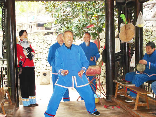 | 每年的正月初一到正月十五,藝人們結伴走村串寨拜年,表現對象不分貧富,戶戶必到。如遇貧寒之家,表演者將別家贈送的禮品相送,意在人人過節(jié)歡喜。充分體現出土家人熱情好客,心地善良的民族性格。對加強民族間團結有一定的作用。