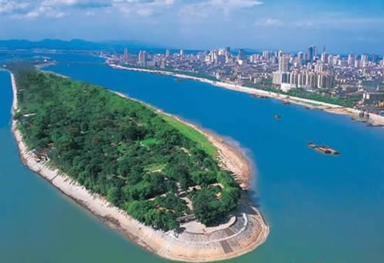 毛主席有一首《沁園春·長(zhǎng)沙》:“獨(dú)立寒秋,湘江北去,橘子洲頭,看萬(wàn)山紅遍,層林盡染”,這里所說(shuō)的橘子洲就在長(zhǎng)沙市區(qū)的湘江中心,是一個(gè)長(zhǎng)約十華里的長(zhǎng)島,是長(zhǎng)沙市的重要名勝。