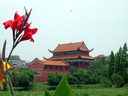 盤王是瑤族人民的始祖,幾迦嗣衩康揭坏囟家⒈P王殿,以紀(jì)念先祖。江華瑤族進入縣境后,曾立有數(shù)座盤王殿,但風(fēng)雨剝蝕,早已毀壞。后來根據(jù)瑤族人民的意愿,將原建于姑婆大山中的盤王殿遷建于縣城沱江鎮(zhèn)。遷建的盤王殿,坐落在風(fēng)景秀麗的平頭巖公園內(nèi),地勢依序為低、中、高三級,與平頭巖相對應(yīng)。