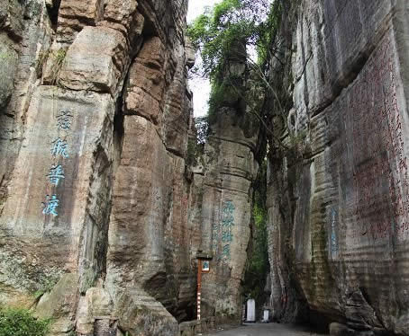 清嘉慶年間辟有洗心池!安欢T”如斧斫神劈,為石林天成,石林壁上鐫滿歷代文人的詩詠。這里古柏參天,藤蘿倒掛,環(huán)境幽美。有壁石如書的萬卷書者,有嵐霧束腰的七級(jí)青石培英塔。凝神盤坐的南海觀音是一塊天然造型的巨石,惟妙惟肖。觀音巖周圍,環(huán)繞著具有明清風(fēng)格的地藏庵、嵩山堂、水府閣等建筑物,布局靈巧緊湊,主題鮮明,因勢(shì)造景。景點(diǎn)間曲徑迂回,迷趣深?yuàn)W,稱八陣圖。景區(qū)內(nèi)的河灘上有兩處溫泉,氤氳縈繞,水溫適宜(41℃),水質(zhì)良好,能治療多種疾病。縣城人民經(jīng)“不二門”前往溫泉就浴者絡(luò)繹不絕,現(xiàn)又增建了石牌坊和民俗博物館。