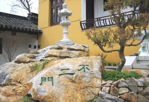 不二門取自佛家“不二法門”之意,正門的右壁上有沈從文先生題寫的“石門天鑿”四字,為沈先生生前最后一次回鄉(xiāng)時(shí)題寫。