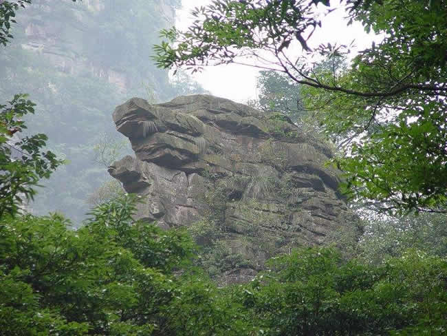 將軍巖!民間傳說是向王天子的化身,看他身披金甲,肚腹微突,背手而立,那神采,那風(fēng)韻,儼然一位指揮千軍萬馬的將軍。已故著名作家莫應(yīng)豐寫詩贊道:“寂寞深山萬古幽,天工造化藝人羞,山中天子隨云去,石上將軍伴歲留”滄桑無語,歲月無邊,長(zhǎng)留天地間的是將軍風(fēng)采!
