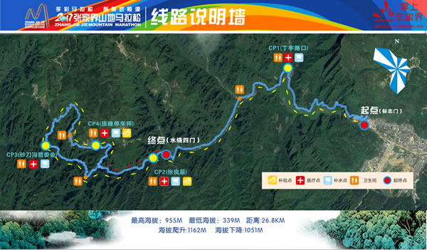 據(jù)了解,本屆山地馬拉松活動分為迷你馬(全程11.8千米)和半馬(全程26.8千米),參與報名612人,其中法國、加拿大、埃塞爾比亞等國外選手25人。5日早上9:00,選手們將從張家界國家森林公園吳家峪門票站出發(fā),途徑十里畫廊、水繞四門金鞭溪、迷魂臺等核心景點(diǎn),最高海拔近千米,累計爬升1162米,累計下降1051米,可謂山地馬拉松的絕佳路線。