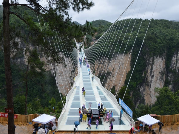 上 午:早餐后07:30至08:00 準(zhǔn)時(shí)統(tǒng)一集合乘車赴“小九寨溝”之美譽(yù)的張家界大峽谷景區(qū)。(車程約60分鐘)【張家界大峽谷+玻璃橋B線】(門(mén)票已含),(已含首道門(mén)票,含游船費(fèi),游覽時(shí)間約3個(gè)小時(shí)),零距離接觸張家界“奇峰三千,秀水八百”的神奇瑰麗。觀天仙水瀑布、蝴蝶泉瀑布、竹仙泉、翠潭攬瀑;行于一線天、天梯棧道、石壁裂縫、石上森林;探怪謎洞、佛手遮天、爛船巖千古流傳的未解之謎;谷中猴群歡躍,百鳥(niǎo)爭(zhēng)鳴,湖水清澈、群山倒蘸 ,鴛鴦戲水、空氣清新、絕無(wú)僅有。形態(tài)各異的瀑布群,把生命之源傾瀉得淋漓盡致;隨海拔變化的植物帶,將四季更替演繹得如詩(shī)如歌;數(shù)條彩虹,百米梭板,千年風(fēng)情,萬(wàn)米長(zhǎng)廊,把峽谷內(nèi)裝扮得如畫(huà)似錦。體驗(yàn)世界最高最長(zhǎng)首座斜拉式高山峽谷玻璃橋【云天渡】,漫步天上人間、輕吻藍(lán)天白云、帶上你的心靈從這頭走到那頭、走過(guò)青絲到白發(fā)!挑戰(zhàn)極限,戰(zhàn)勝自我(上橋游覽時(shí)間為20-30分鐘);(玻璃橋游覽注意事項(xiàng):1、遇大風(fēng)、暴雨等極端惡劣天氣,玻璃橋有可能關(guān)閉,關(guān)閉不能通行時(shí)不退任何費(fèi)用;2、除錢(qián)包和帶有手機(jī)套的手機(jī)外,任何物品不得帶上橋;3、凡有心臟病、高血壓、恐高癥及醉酒和其他身體不適宜游覽的,請(qǐng)勿上橋;4、穿高跟鞋的游客不允許上橋;5、不得在橋上追逐、打鬧,拋物,不得倚靠橋上欄桿,以防身體傾斜,發(fā)生意外。6、游客在游覽過(guò)程中請(qǐng)聽(tīng)從景區(qū)工作人員管理)!