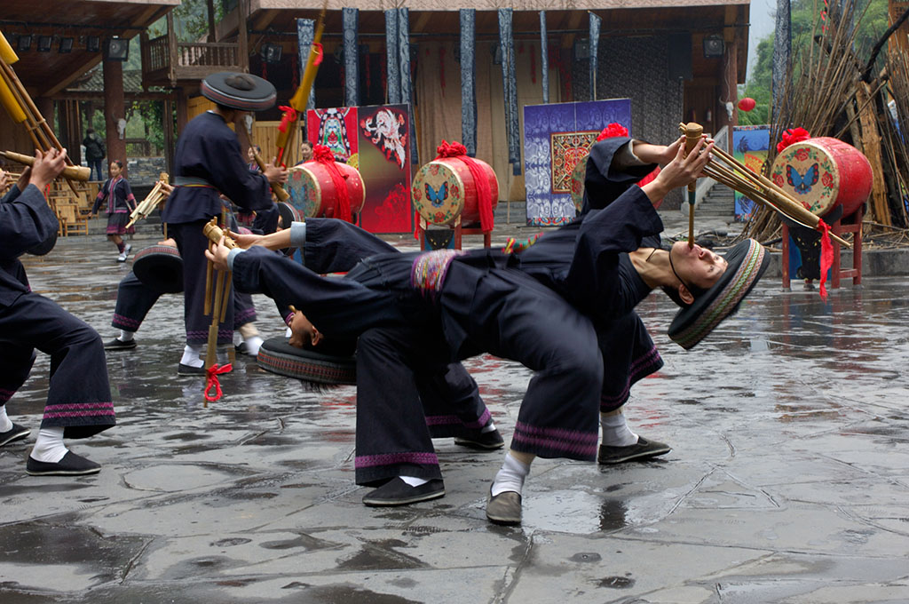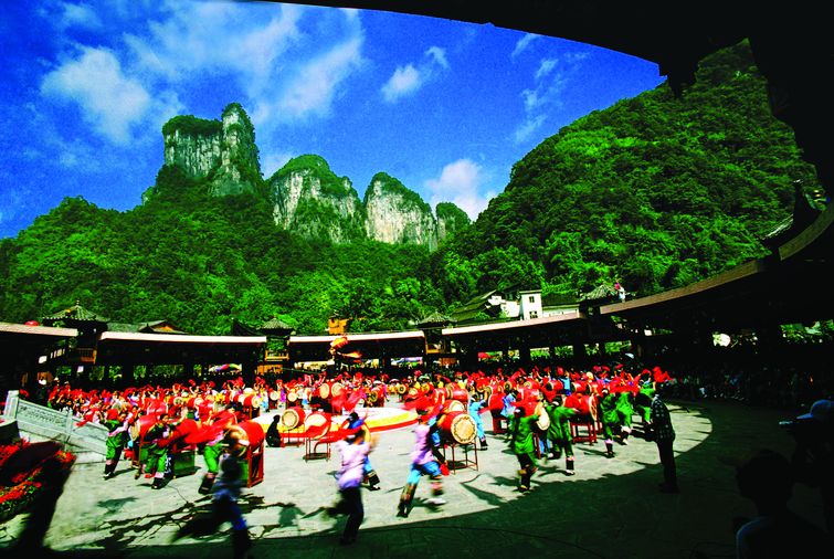 吉首市德夯風(fēng)景區(qū)地處云貴高原邊緣,位于湘西土家族苗族自治州首府吉首市西郊,距吉首市24公里。德夯旅游區(qū)以矮寨為中心,東到堂樂洞、西到大龍洞,南從武山、蓮臺(tái)山開始,北到流紗瀑布(全國落差最高的流紗瀑布和瀑布群),小龍洞,總面積約190平方公里。自矮寨鎮(zhèn)洞溪上行4公里至德夯苗寨,沿岸筒車、水輾、古渡、小舟,伴以苗家吊腳樓,一派田園詩情。九龍溪穿寨而過,四周山色清幽,懸崖如削......在青山綠水間,點(diǎn)綴著一幢幢灰瓦石基吊腳樓,一條條光滑的石板路,一座座精巧的石拱橋,一群群赤足紅裝的浣紗苗女。還有那古老的石碾和筒車,在水力的帶動(dòng)下,咕咕嚕嚕、咿咿呀呀,不知疲倦地旋轉(zhuǎn)著,一派田園詩情,這就是德夯苗寨。由于這里是純苗區(qū),苗族人民的風(fēng)俗習(xí)慣對德夯影響很大,苗族人民的四月八、跳鼓舞、三月三歌會(huì)、趕秋、接龍、推牛以及苗嶺情歌,無不吸引著中外游客。因此,古樸優(yōu)雅的苗族風(fēng)情又成為德夯人為景觀的特色。